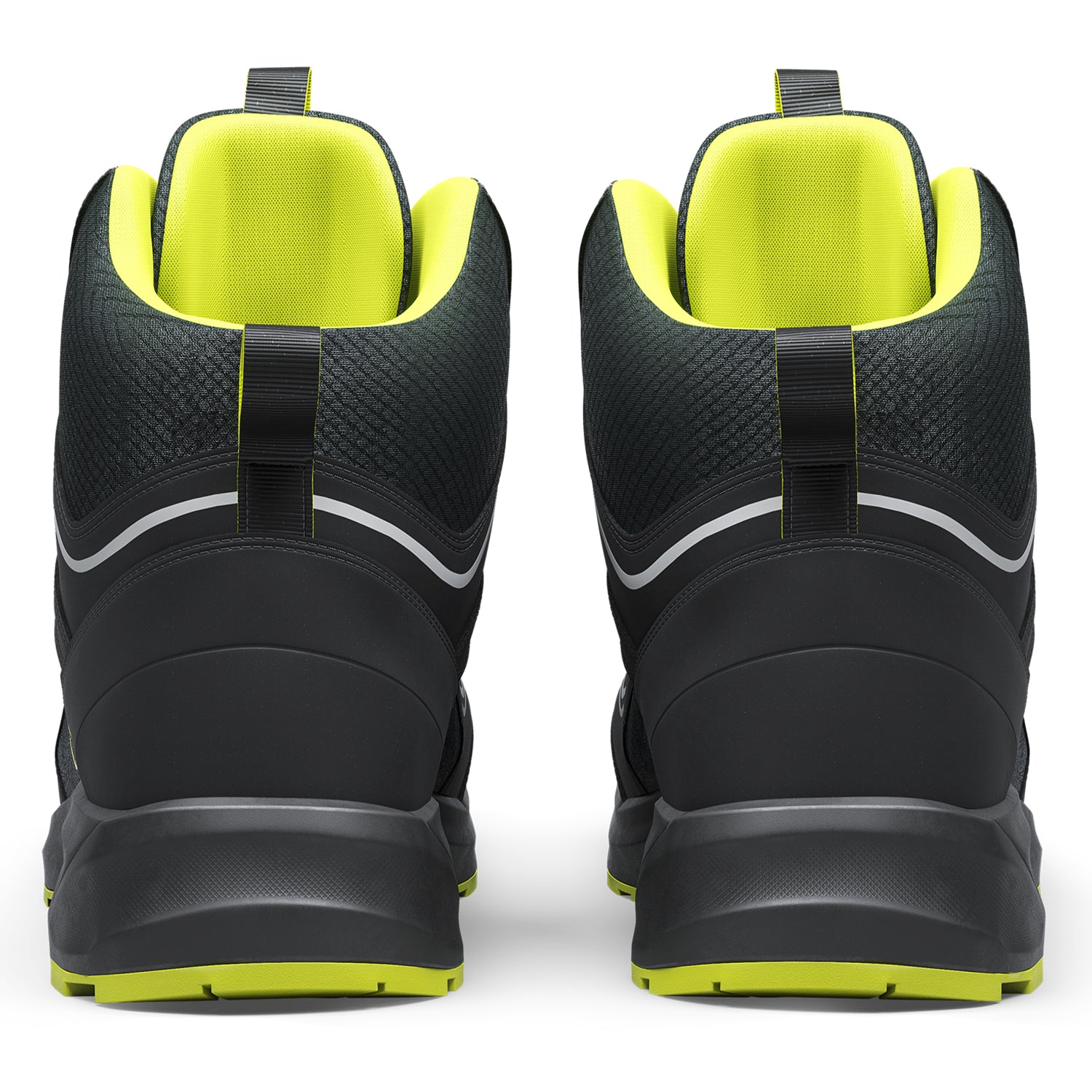 Sporty midcut safety boot with built-in comfort in all parts. Upper of LWG leather with nubuck finish and CORDURA® fabric for breathability and lightweight. Moisture transporting and recycled lining for foot climate.
