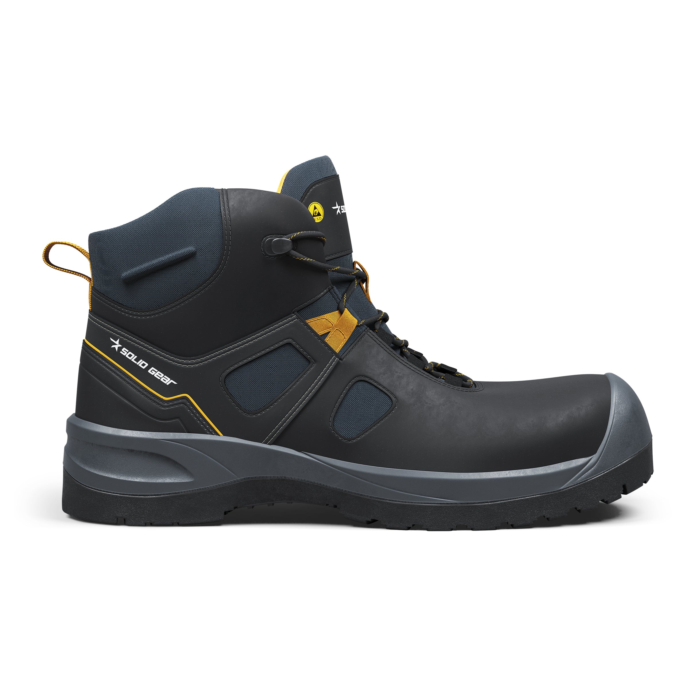 Modern midcut safety boot with built-in comfort in all parts. Upper of LWG leather with nubuck finish and CORDURA® fabric for durability. Moisture transporting and recycled lining for foot climate. Cushioning and breathable open cell PU foam insole. Stable PU midsole with integrated nylon shank. Oil and slip resistant PU outsole designed for great grip on various surfaces.