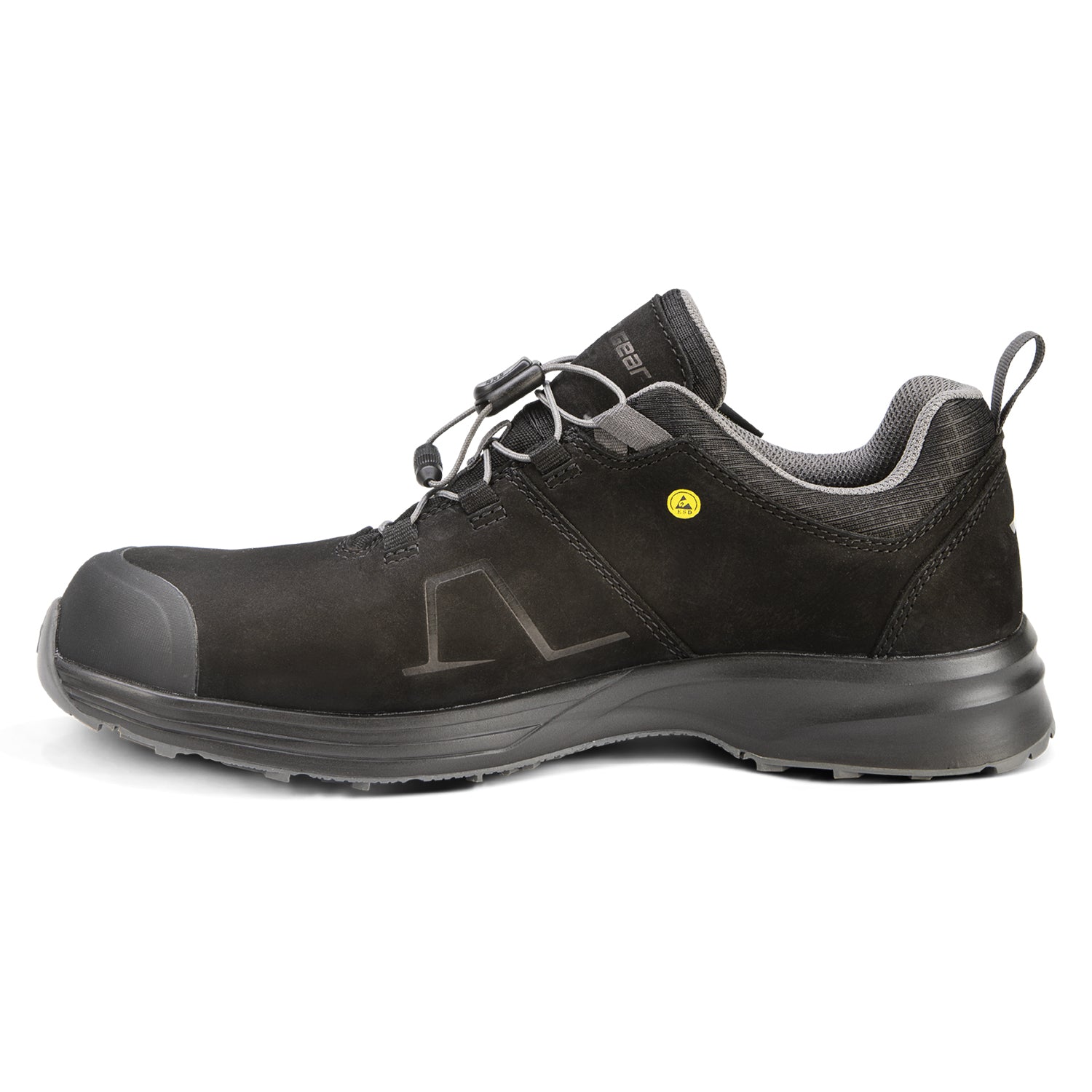 Speed lacing for stepping in and out the shoe quickly. For the user who prefers traditional lacing and even more discreteness, the speed lacing can be switched with the complimentary black laces. Fiberglass toe cap and soft nail protection. ESD function according to EN IEC 61340-4-3:2018.