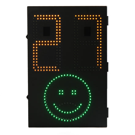 Our smiley face speed-indicating radar sign can be used to convey both a positive smiley face to those who are not exceeding the speed limit and a negative red frowning face to those who are going too fast. The quick and obvious colour difference quickly conveys either a positive or negative message to drivers.