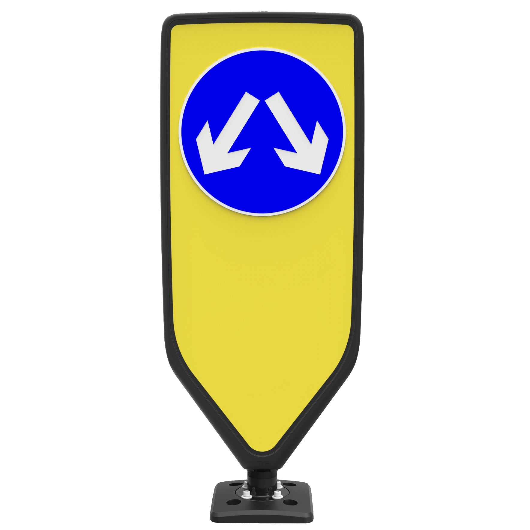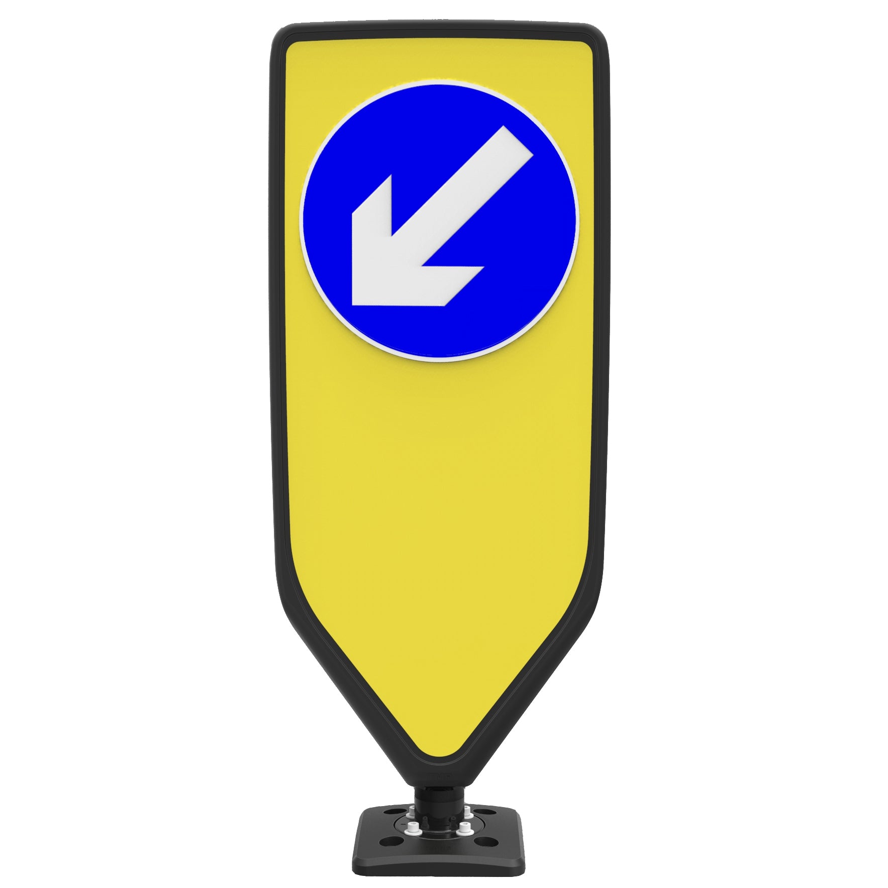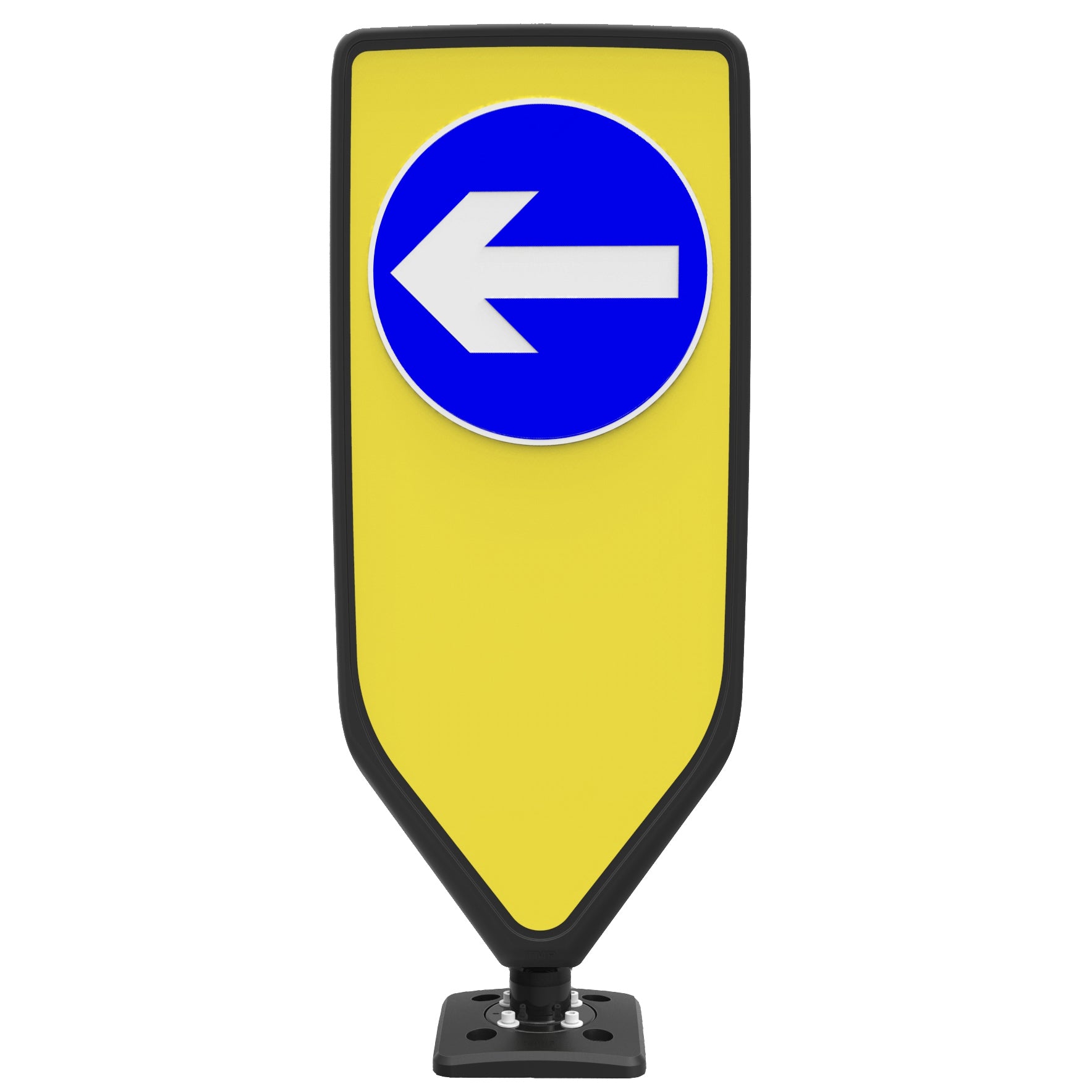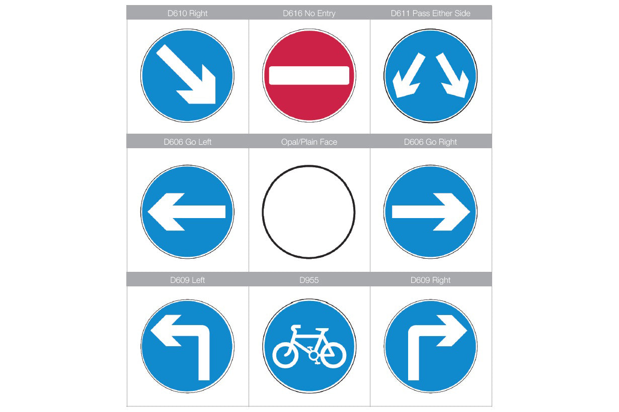 The EVO-N is available in various configurations, as standard it comes with a keep left face (D610). This symbol is installed on a 3M Diamond Grade DG3 background in yellow. We are also able to supply it with a number of other faces including;