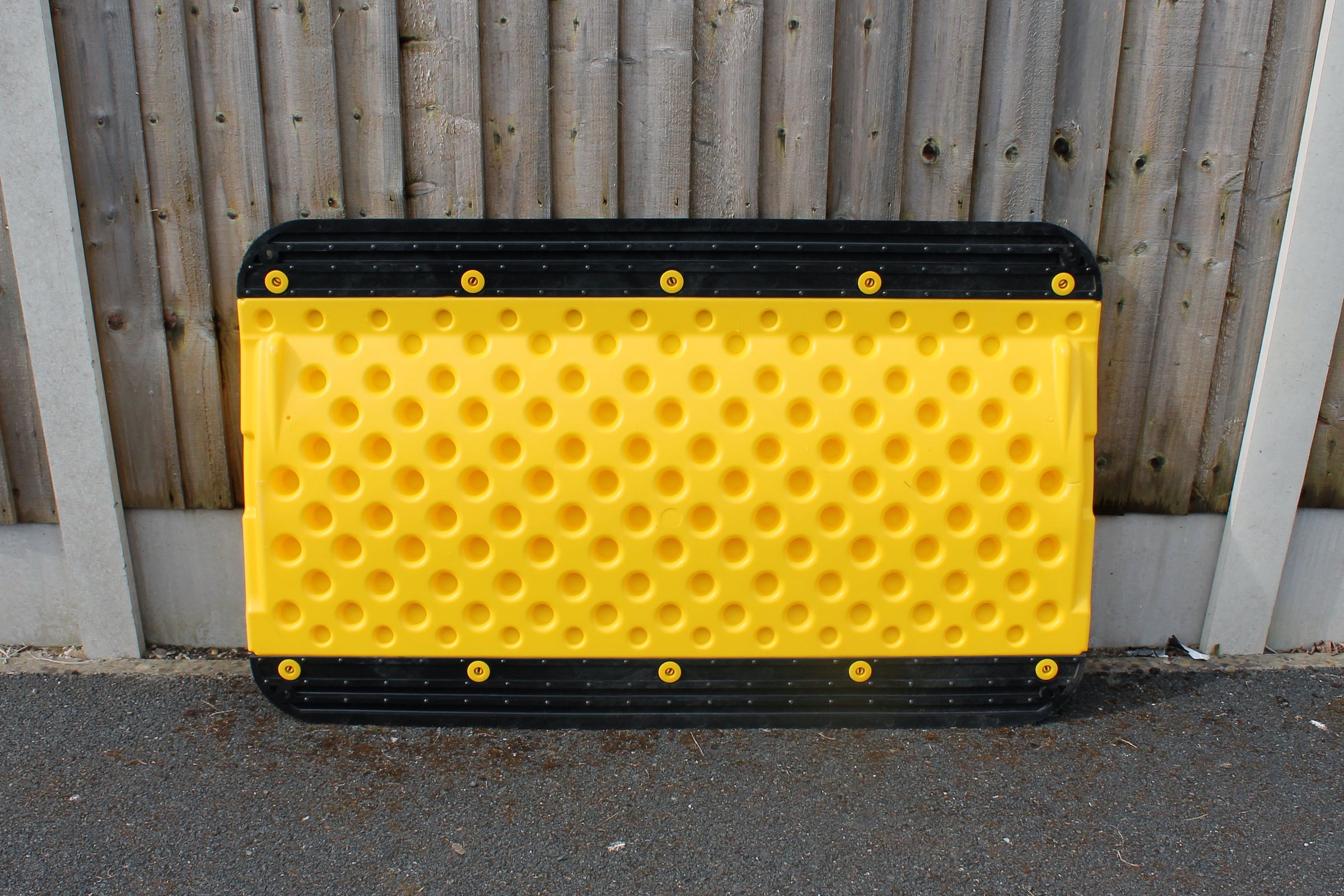 This durable ramp has a maximum load capacity of 350kg. This item is stackable to for easy transportation.