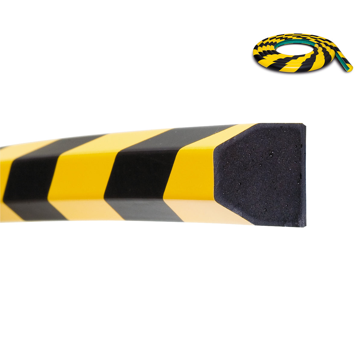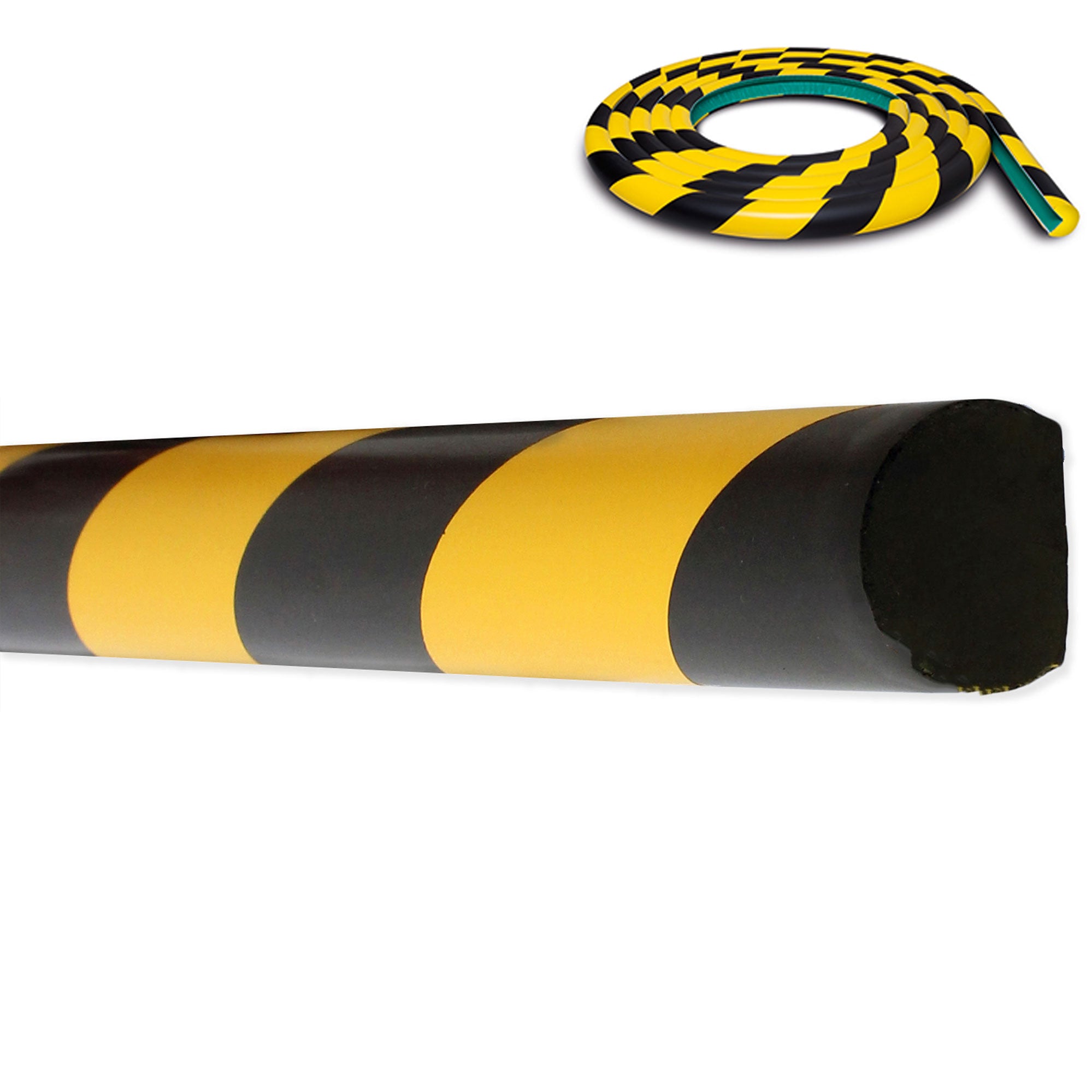These 5m long self-adhesive yellow and black foam strips are perfect material for preventing bumps and scrapes as well as banging of heads! They protect walls and equipment from impact, preventing damage to the wall and object hitting it. These strips are quick and easy to install onto almost any flat surface and is available in a variety of profiles, including Trapezoidal, semi-circular and square.