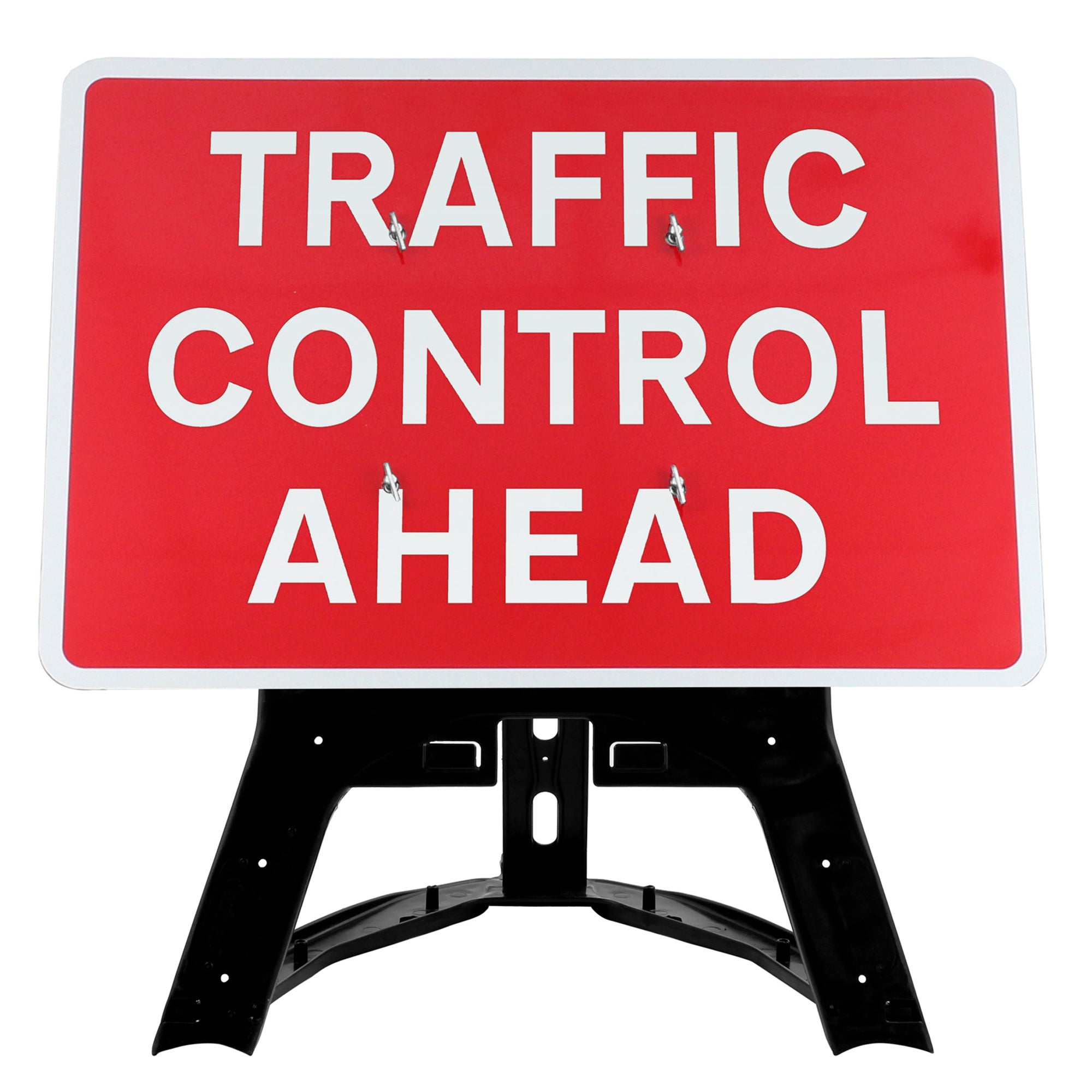 This Traffic Control Ahead 7010.1 QuickFit EnduraSign is used alongside other red and white signage to inform road users that there is traffic management in place ahead to help guide traffic around works safely. The sign gives a warning so that drivers can be prepared to slow or even stop should the need arise.