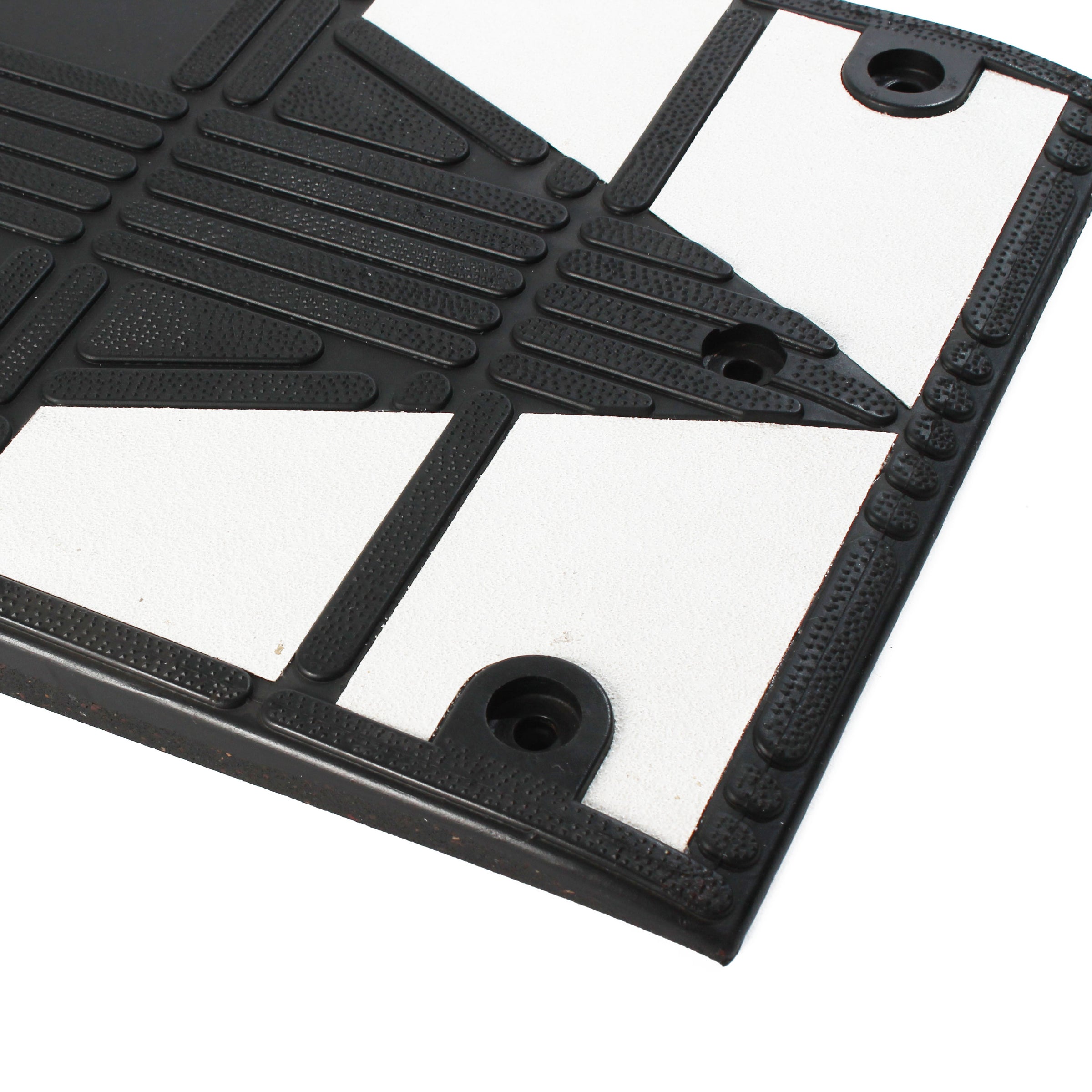 The ramp features white chevron markings allowing pedestrians and vehicle drivers to spot the ramp in low light settings. The upper surface is textured for extra grip, reducing the risk of slips and trips. The vulcanised rubber construction makes this ramp very hard wearing and suitable for most wheel traffic. It is the ideal solution for delivery drivers and builders who need to push products up kerbs without using unwieldy scaffold boards or improvised ramps.