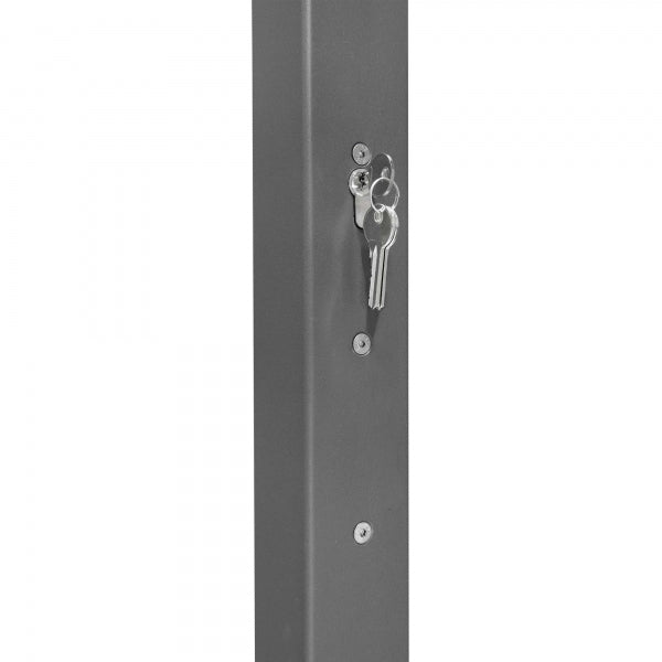 You’ve got options with locking—choose between a cylinder lock with keys or a triangular lock (keys not included) for quick removal when you need to open up a space. Every post is ready to take chain eyes, which can be fitted at the time of order or added later, making it easy to link posts together for longer runs.