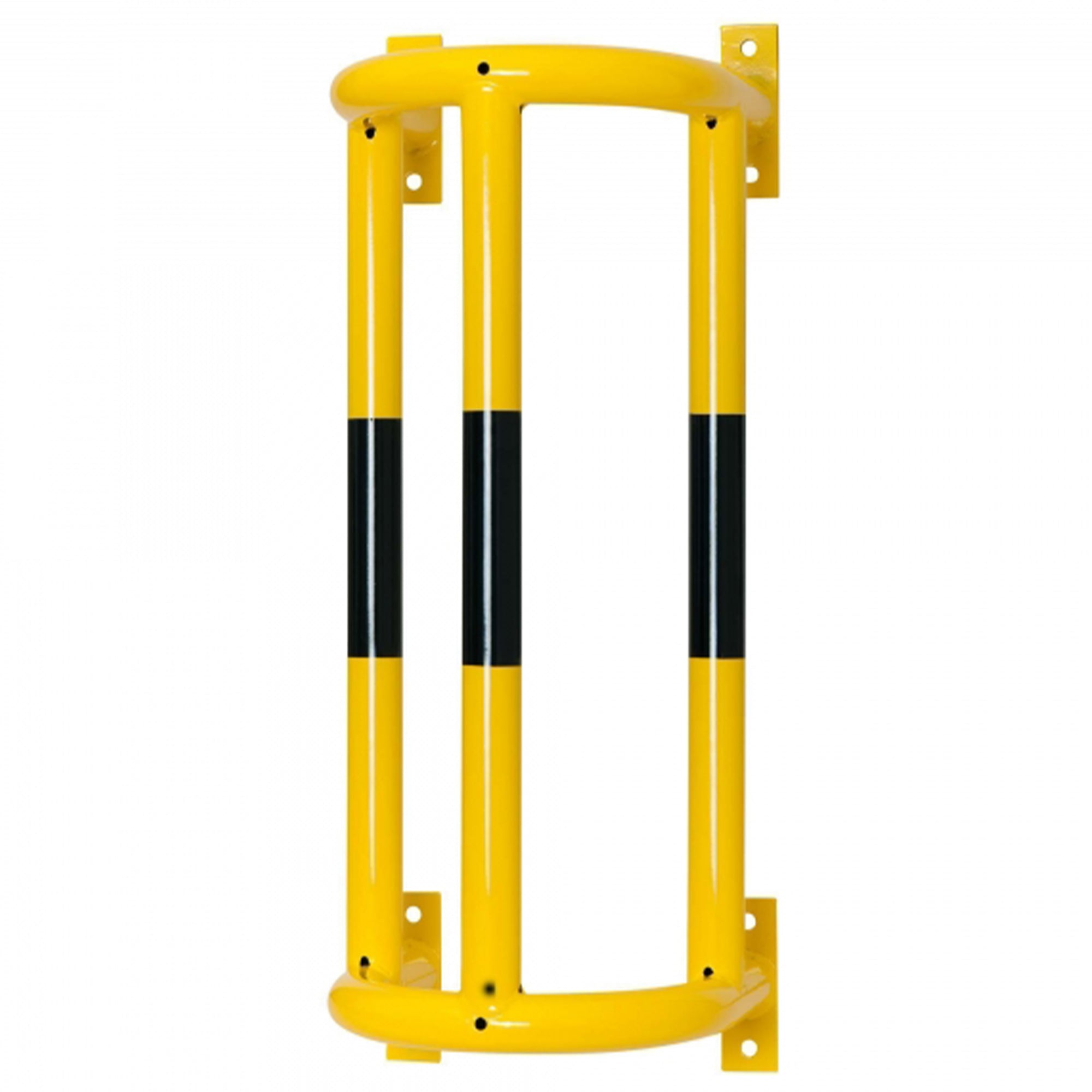 Manufactured from 48mm diameter tube with a 2mm wall thickness, this wall-mounted drain pipe protector is ultra-durable. A quality hot-dip galvanised finish sits beneath a high visibility yellow powder-coated covering. This dual finish ensures that this pipe protector will not rust even if the powder-coated finish is scuffed.