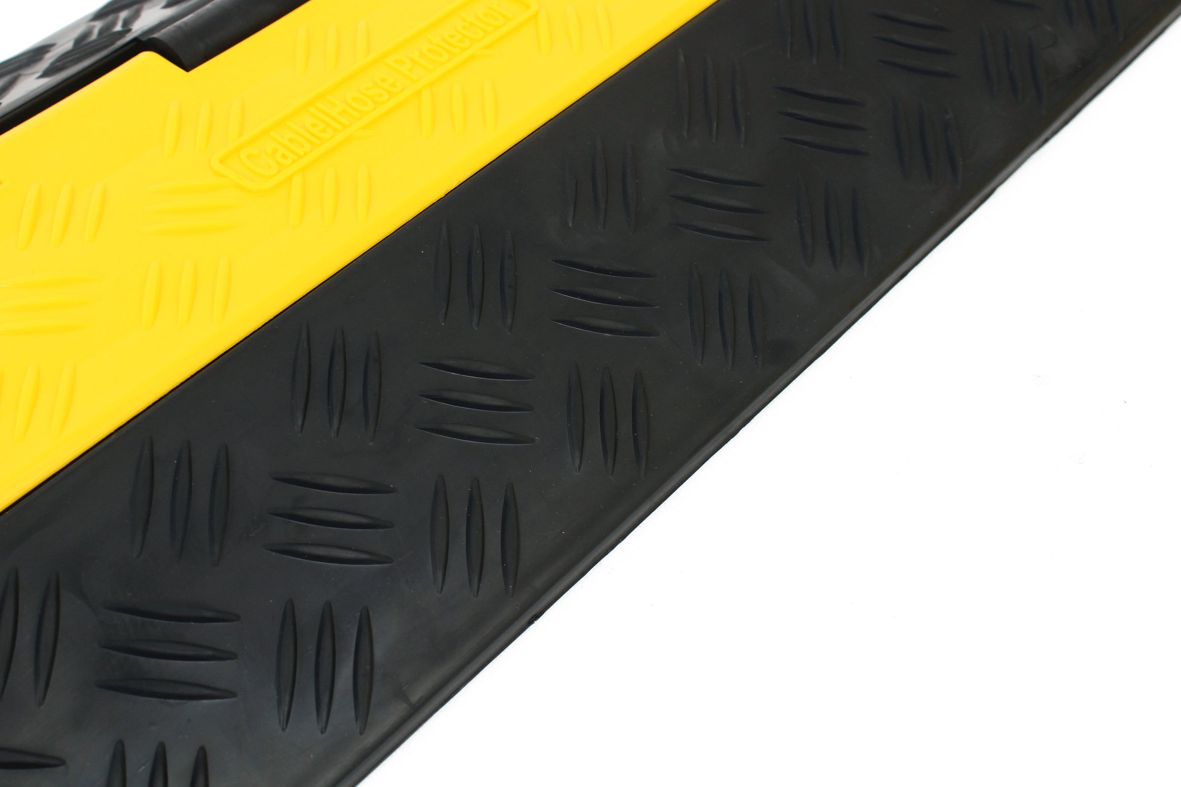 The ramp features a high visibility yellow lid with anti-slip surface to ensure pedestrians can cross safely. Interlocking tabs on each end of the ramp ensure that the ramps do not separate whilst in use. These products are designed for temporary installation during construction works and road works. To ensure that vehicles cross at an appropriate speed (3-5mph) speed limit signage should be used.