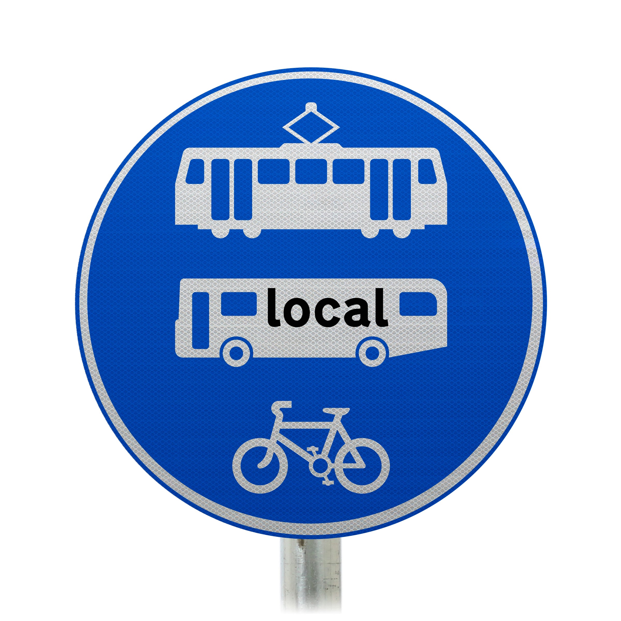 The "Tramcars, Buses and Bicycles" only sign should be used where buses and pedal cycles can use a tram gate, off-street tramway or segregated on-street tramway. This would be placed where an integrated on-street tramway leaves the general traffic route as close as possible to the prohibited area. The sign can also be varied to allow for "Trams, Local Buses and Bikes Only".