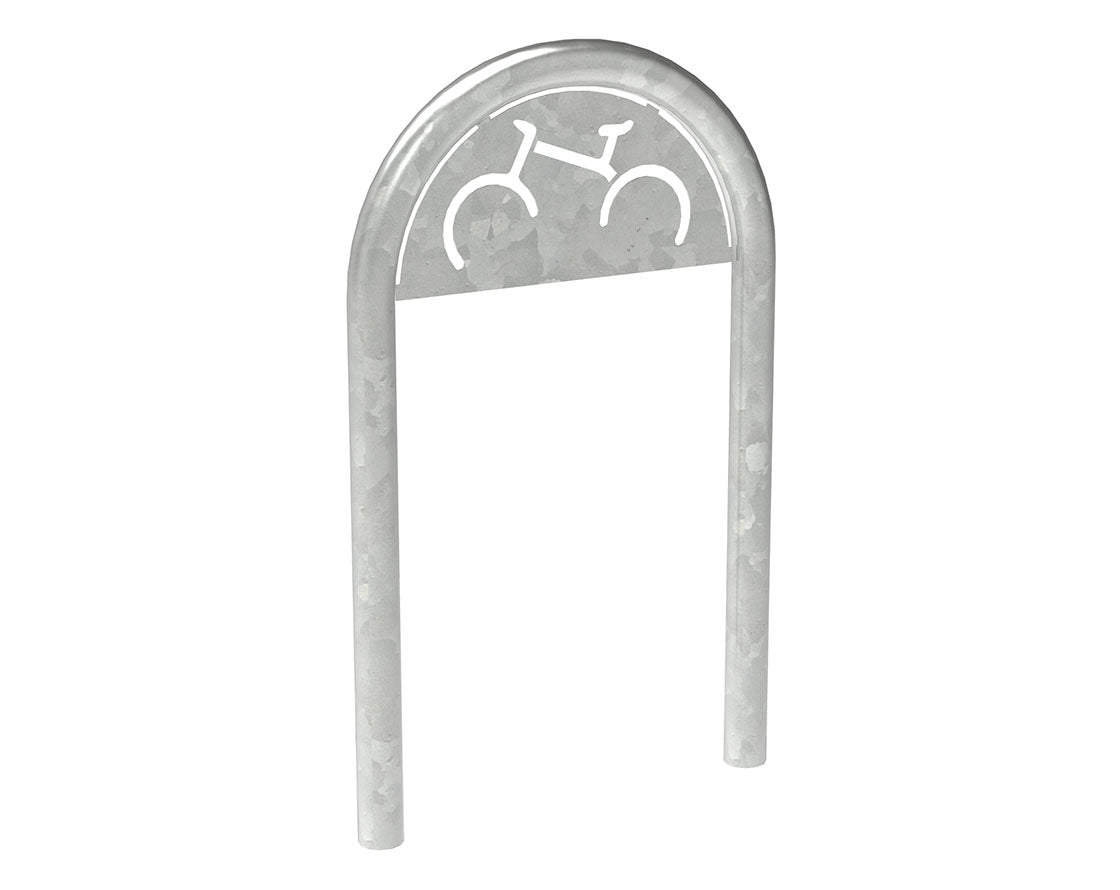 This bike stand features a clean bicycle motif, fixed into one of our high-quality 60mm trombone bike stands. The addition of the decorative plate not only enhances the appearance, it indicates that the area is specifically for cycle parking.