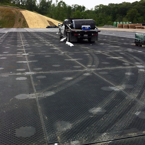 The TuffTrak XL is a heavy-duty access and road mat with a butt-together design using strap connectors. This makes it more durable and dependable; in fact, it is one of the leading roadway mats in the marketplace. With each mat spanning just over four meters wide, it can accommodate many large vehicles in a single span, making it fast and efficient when used for roads and track accessways to remote construction sites.