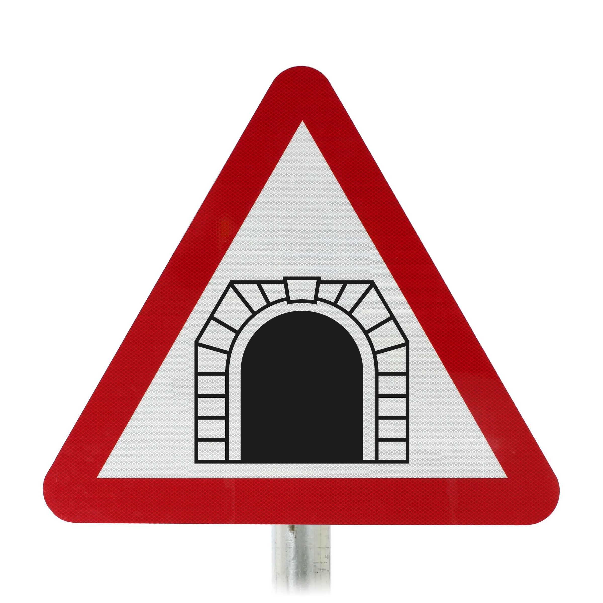 The tunnel sign is to warn drivers of a tunnel approaching on the road they are travelling on. You will see this sign positioned at the appropriate distance before a tunnel, the warning sign is designed to alert drivers of the changes in driving conditions.