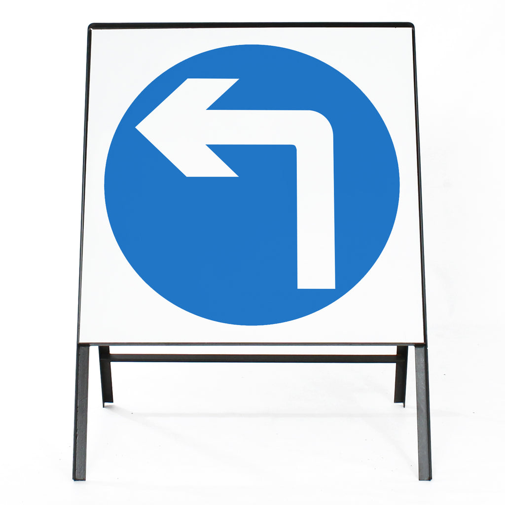 - Chapter 8 compliant Turn Left Ahead sign in a 750mm square size.