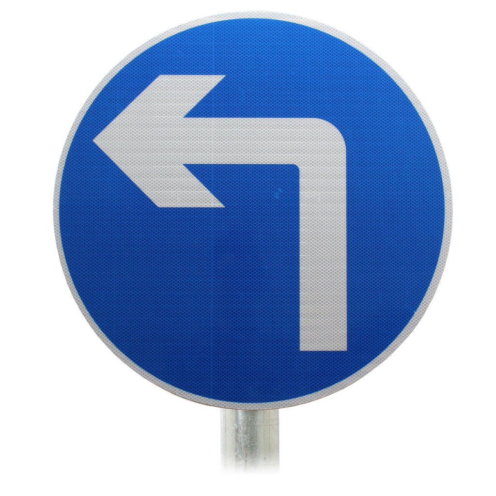 This 609 post mounted sign indicates that all vehicular traffic must turn ahead in the direction that the arrow is pointing. These are commonly used where a single carriageway meets a dual carriageway at T-junction.