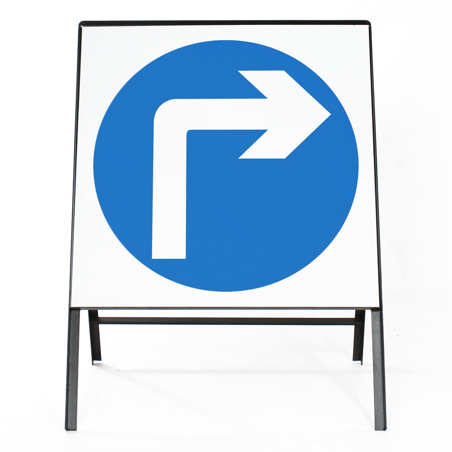- Chapter 8 compliant Turn Right Ahead sign in a 750mm square size.