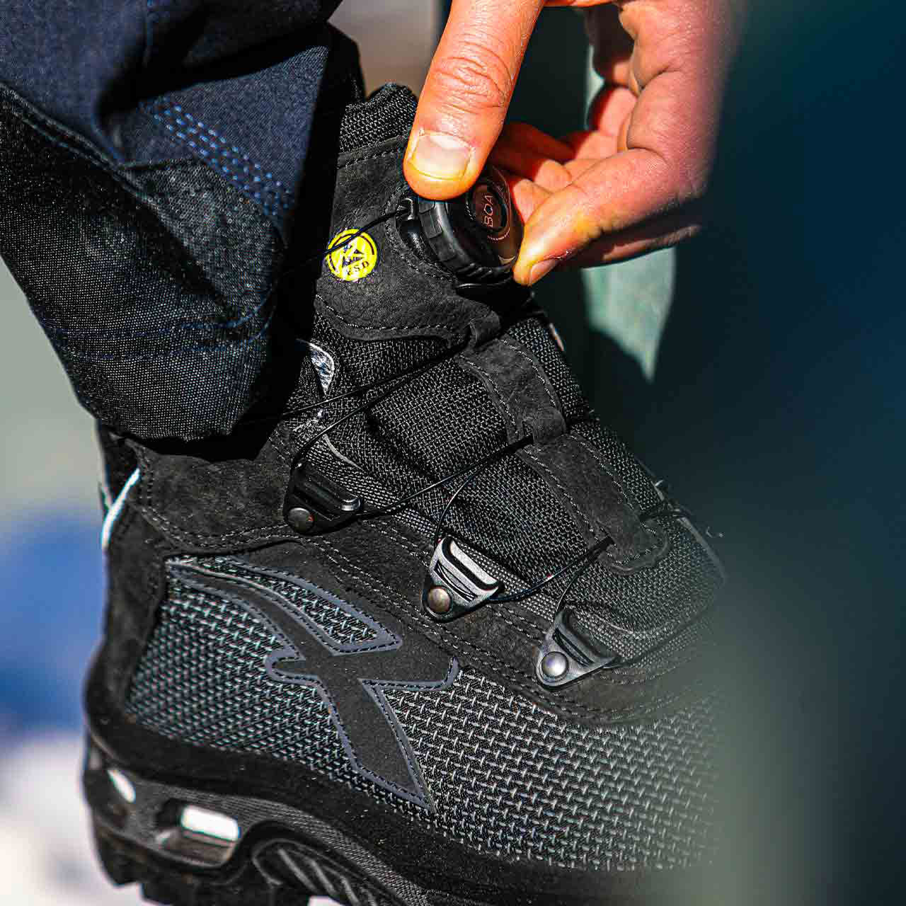 An aluminium toe protector combined with a metal-free sole protector means that you can take every step with the confidence you need to get the job done. When the going gets tough the KORA is the shoe to get it done.