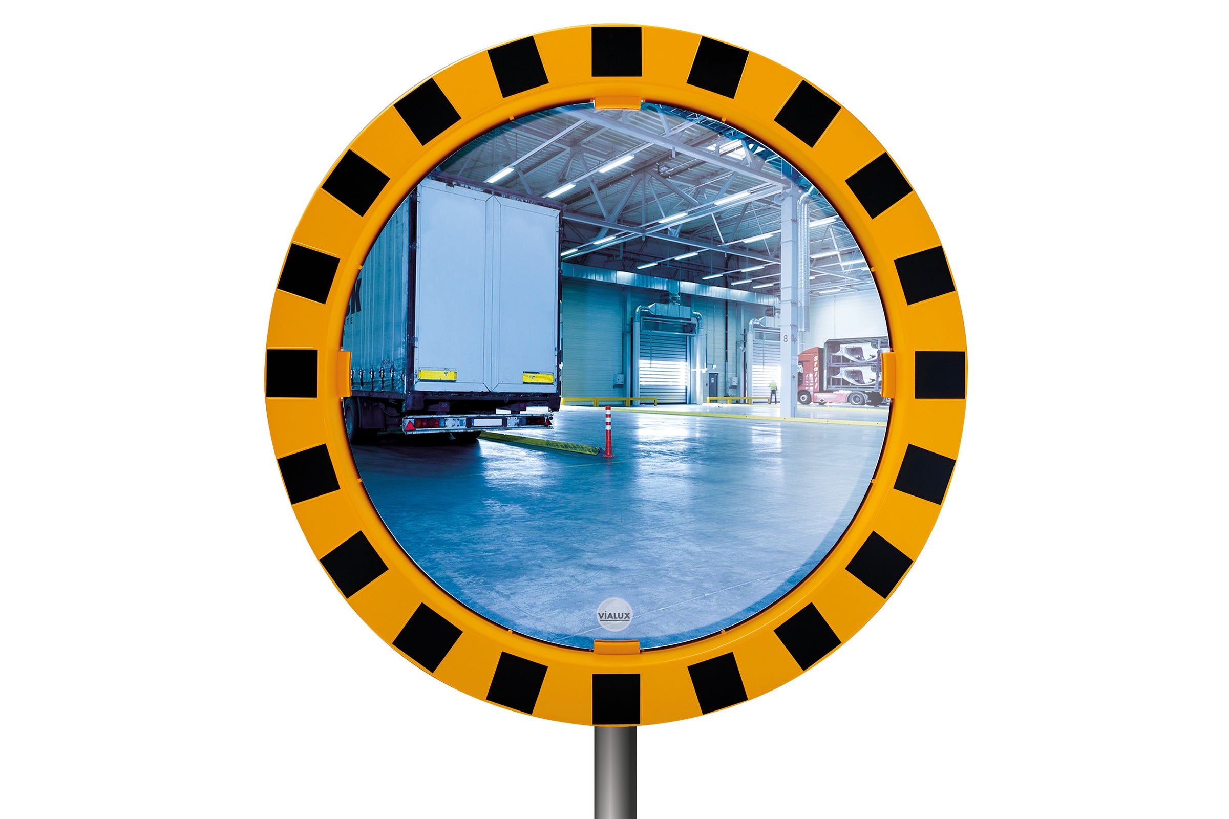 The high visibility yellow and black frame draws the eye to the mirrors wide angle lens to ensure they are not missed. This contrasting frame is essential in an environment where so many colours are used to convey different safety meanings, ensuring the mirror stands out.