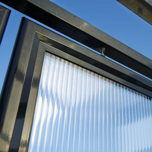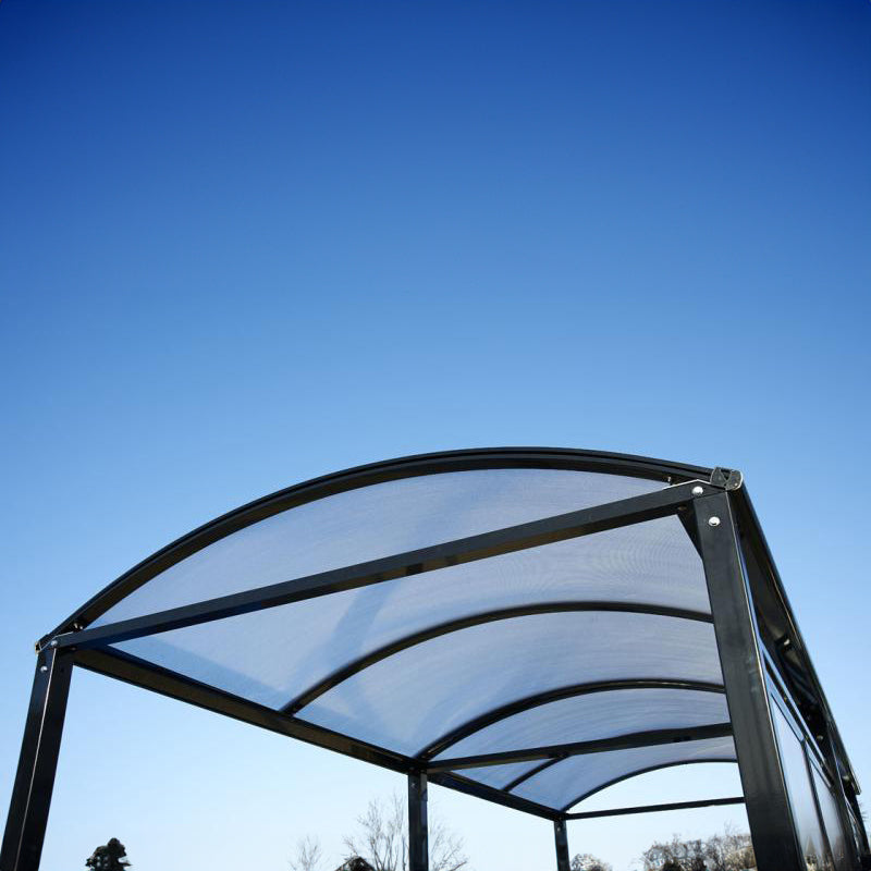 The Complete Voute Bike Shelter comes with side and rear cladding panels as standard, providing wind and rain protection from three of its four sides. All of the transparent panels like the other shelters in the Procity range are UV treated and have a cellular construction which is far tougher than single skin alternatives.