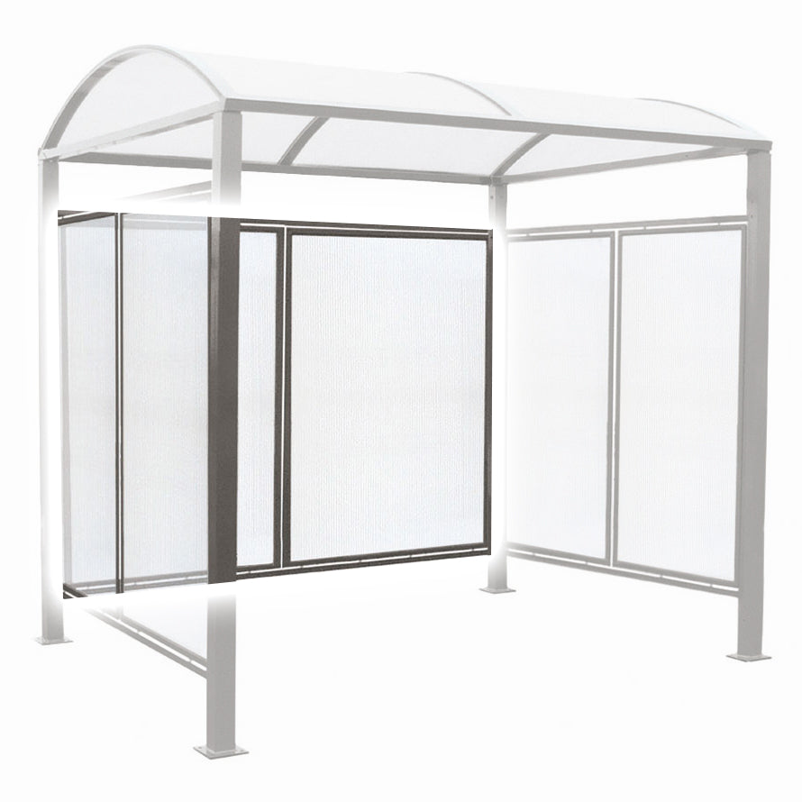 The panels are made from UV stabilised 10mm polycarbonate mounted into an aluminium frame. These frames can be purchased in one of several colours to match into other products from the Procicy range of street furniture.