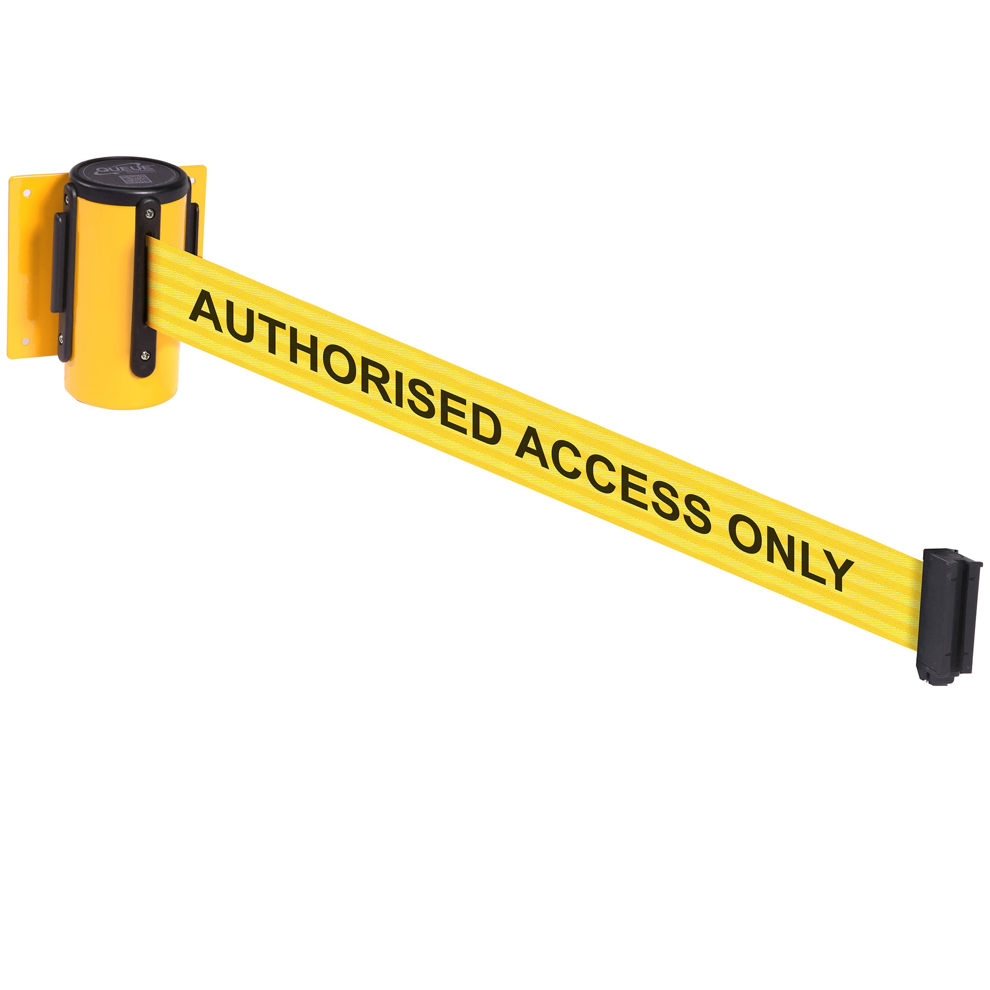 The WallMaster 300 is ideal for use in areas where there is not enough space to have a regular post and belt barrier system. The housing for the WallMaster mounts on one flat surface with a receiving clip being mounted opposite.