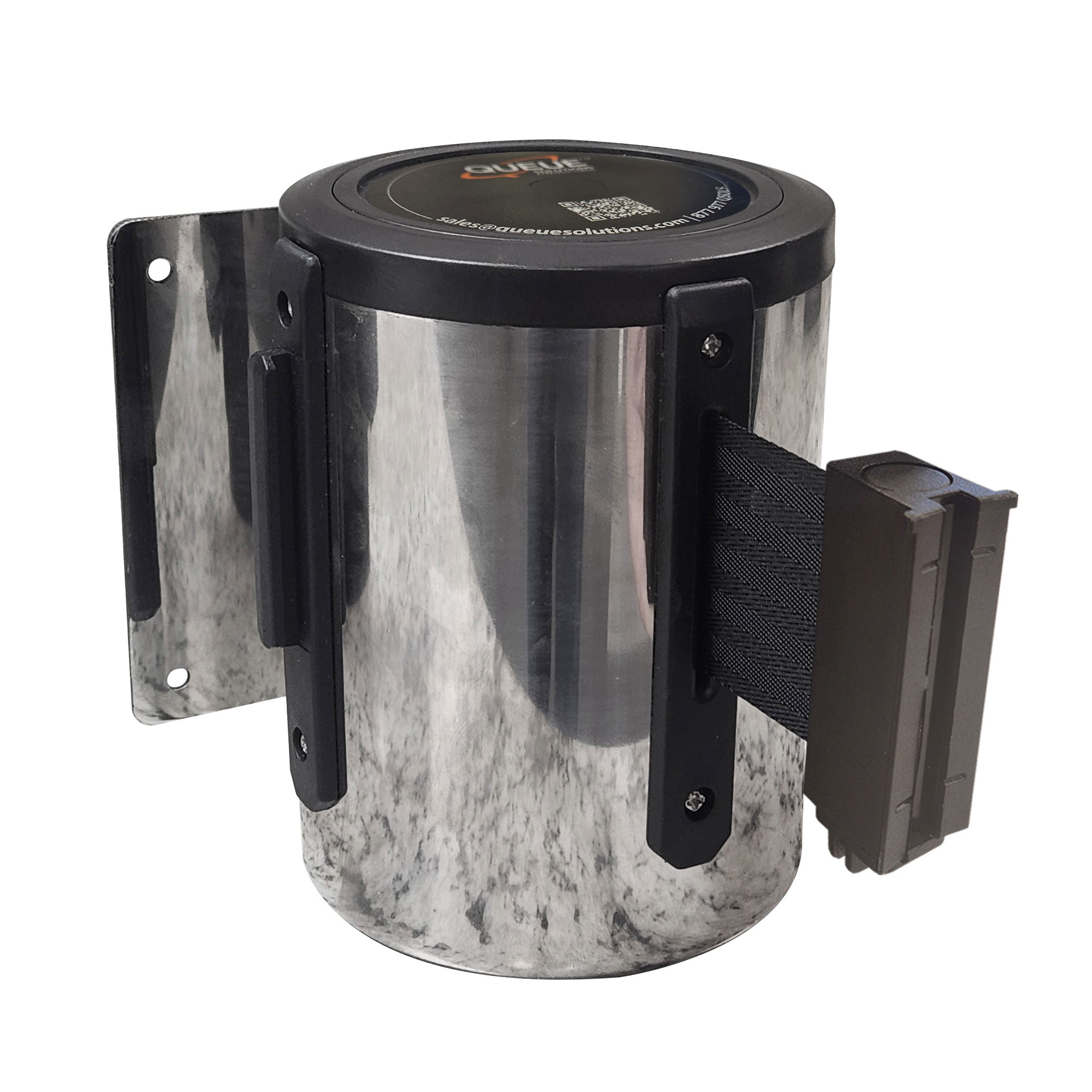 The WallMaster 450 is a wall-mounted retractable belt barrier. Sleek steel housing in a compact design with extra-long belt lengths, ideal for cordoning off large, open spaces such as warehouses, factories, airports, schools, and shopping centres.