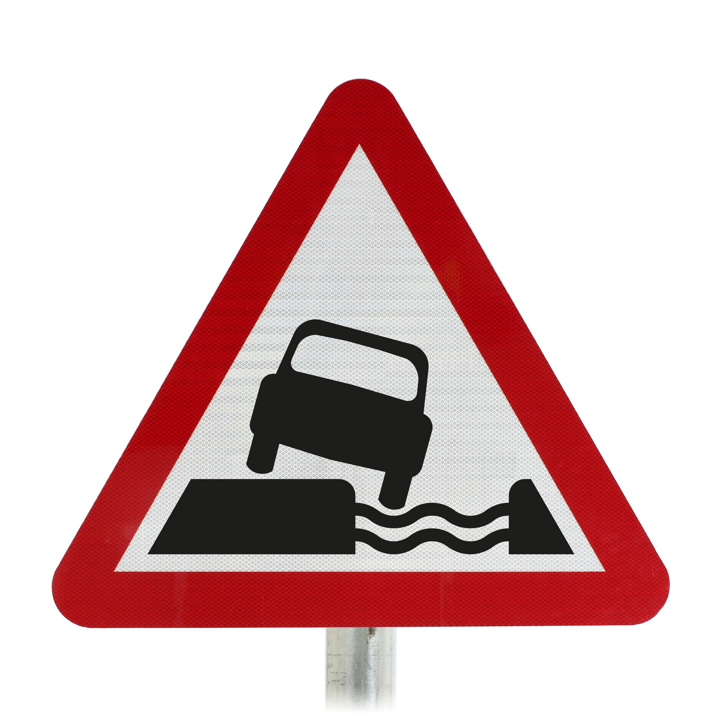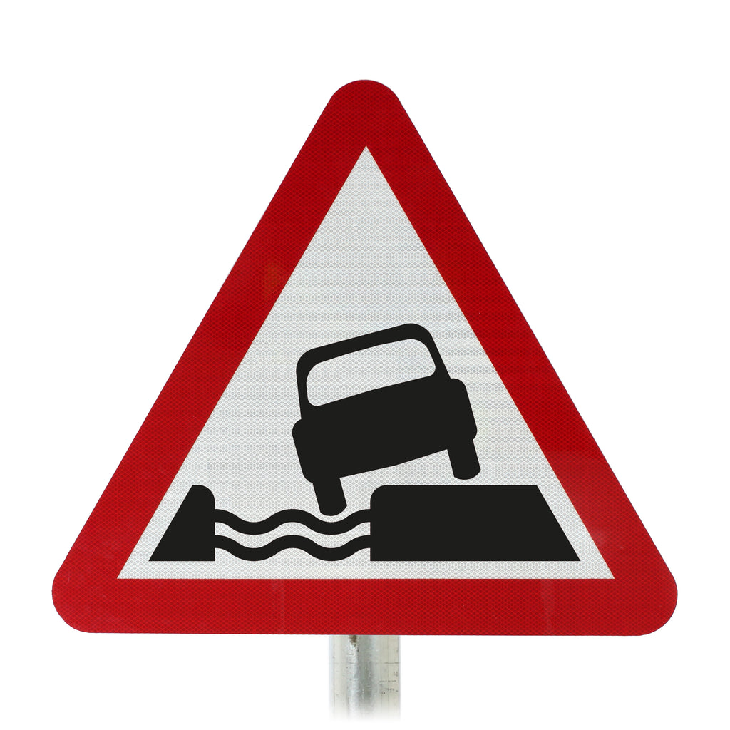 The watercourse sign, labelled 555.1, shows drivers there is a deep water course alongside the length of the road, which would be damaging to the vehicle if fallen in to. This sign is especially important if the water isn’t easily visible due to vegetation, easy overflowing or general lack of distinction. Wherever the road edge is clear however, due to a kerb or safety fence, the sign is not necessary.