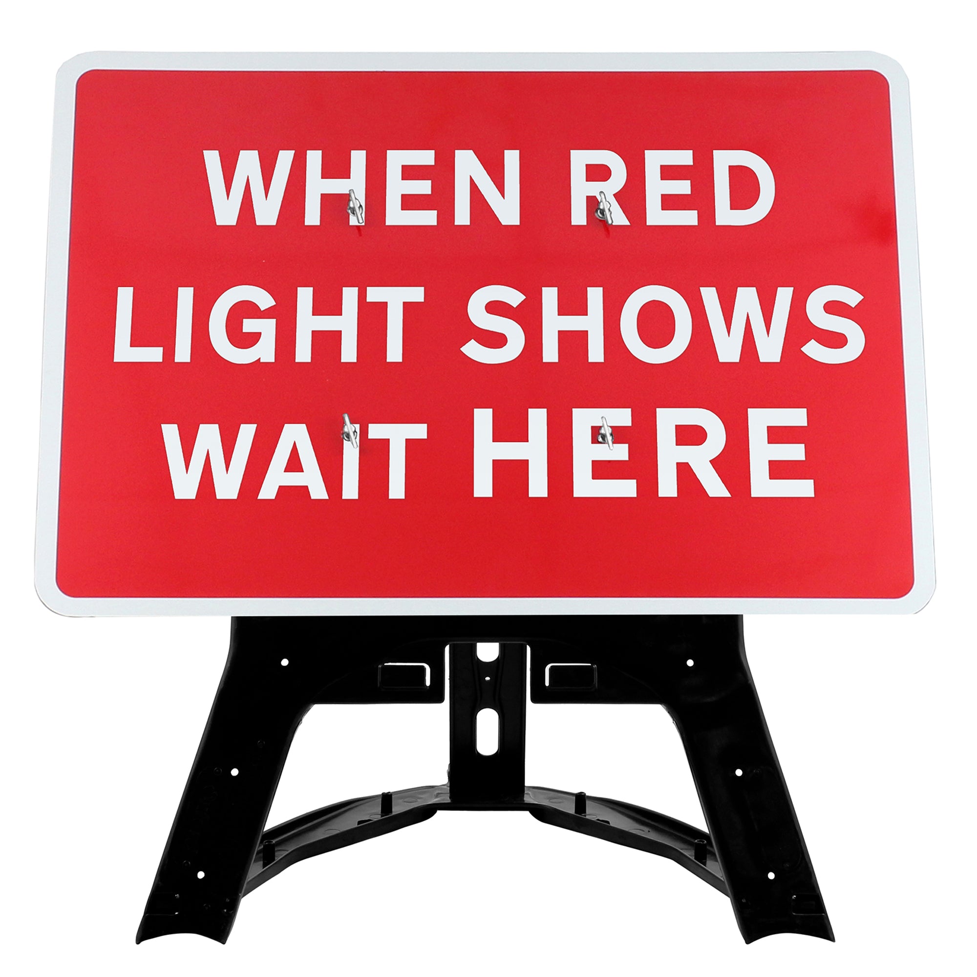 This When Red Light Shows Wait Here 7011 QuickFit EnduraSign is used whenever temporary traffic signals are being used to ensure that drivers stop at an appropriate position on the road and do not block traffic passing through the works.